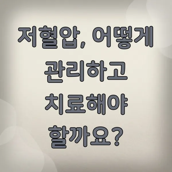 저혈압, 어떻게 관리하고 치료해야 할까요? 🏃♀️