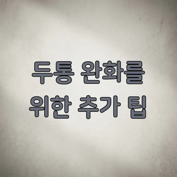 만약 이미 두통이 시작됐다면, 따뜻한 물수건 을 목 뒤에 대주거나 가벼운 스트레칭 으로 목과 어깨 근육을 풀어주는 게 좋아요. 혈액 순환을 도와주면서 긴장을 완화하는 데 도움이 되거든요.